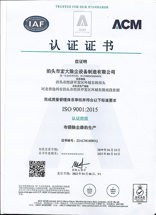 ISO9001認證證書-ISO 9001認證(zhèng)證書-91视频官网除塵設備